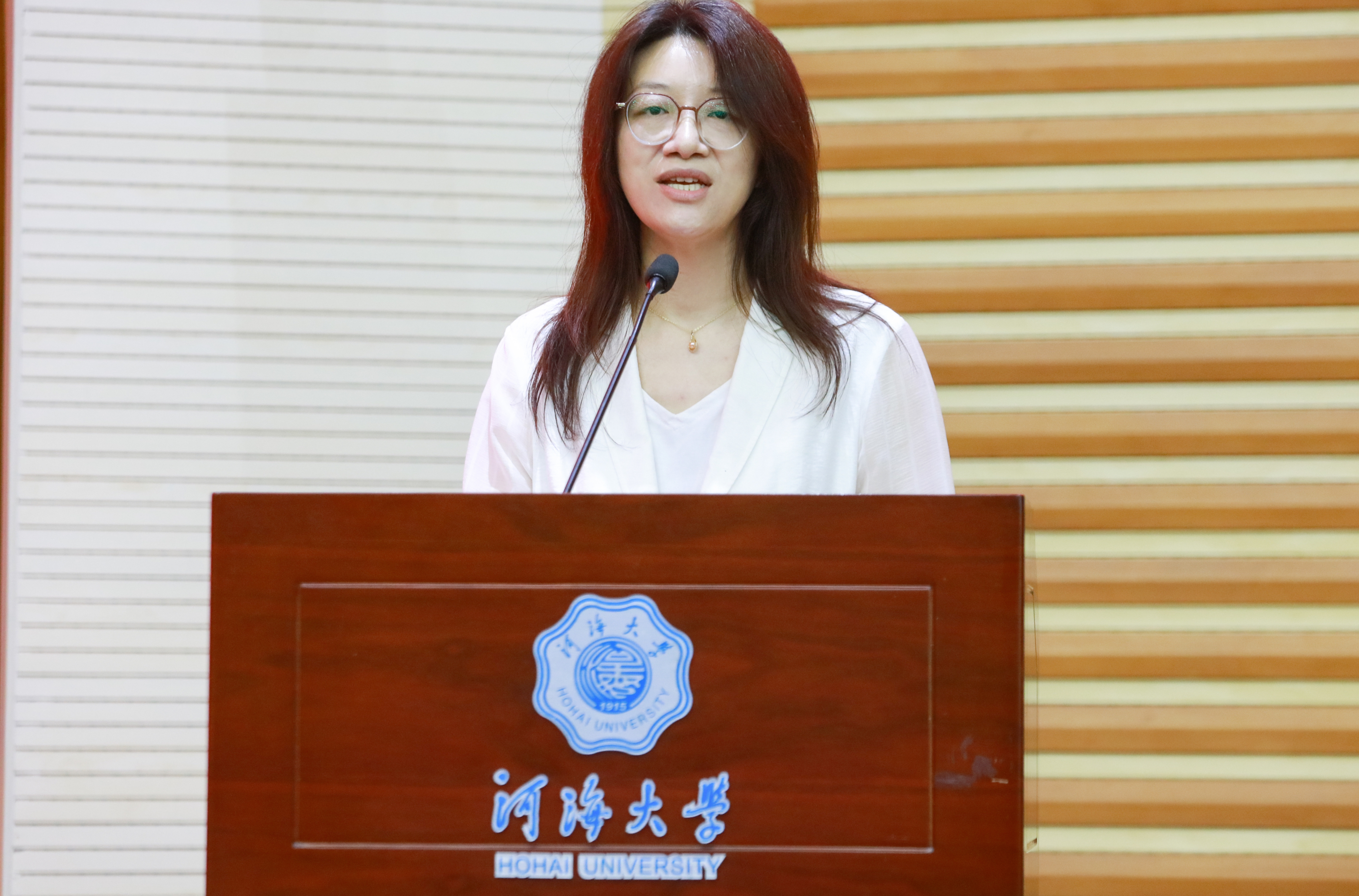 王媛发表致辞,她代表全院师生向顺利完成学业的全体毕业生们表示最热烈的祝贺,向辛苦劳作的教职工老师以及学生家长们致以由衷的感谢。王媛对全体毕业生提出三点期望:一是家国为先,坚守学水为善的初心使命,传承河海人的家国情怀和使命担当。二是矢志前行,绘制治水安澜的水利蓝图,成为担当水利强国大任的时代新人。三是笃行不怠,开创赓续发展的水利新篇,为祖国水利事业改革发展、中华民族伟大复兴贡献力量。她祝愿毕业生秉河海之魂乘风破浪,做擎天之柱建功立业,成济世之才强国兴国。