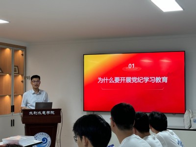 值此“七一”到来之际,为了进一步强化党员的纪律意识,提高党性修养,6月23日,副校长沈扬为水电院本科生第三党支部讲授党纪学习教育专题党课。学院党委副书记戴媛媛、本科生第三党支部书记笪步源出席本次活动,学院本科生第三党支部2020-2022级本科生党员参与学习。活动由戴媛媛主持。