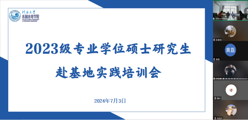 2024年度,成人抖音 共派遣152名研究生前往全国各大流域管理机构、设计集团及科研院所共计50家研究生联合培养基地开展实习实践活动。此次培训会帮助同学们进一步明确未来学习方向和实践任务,为后续在基地实践各项工作的开展奠定了良好的基础。(图、文/陈辰)