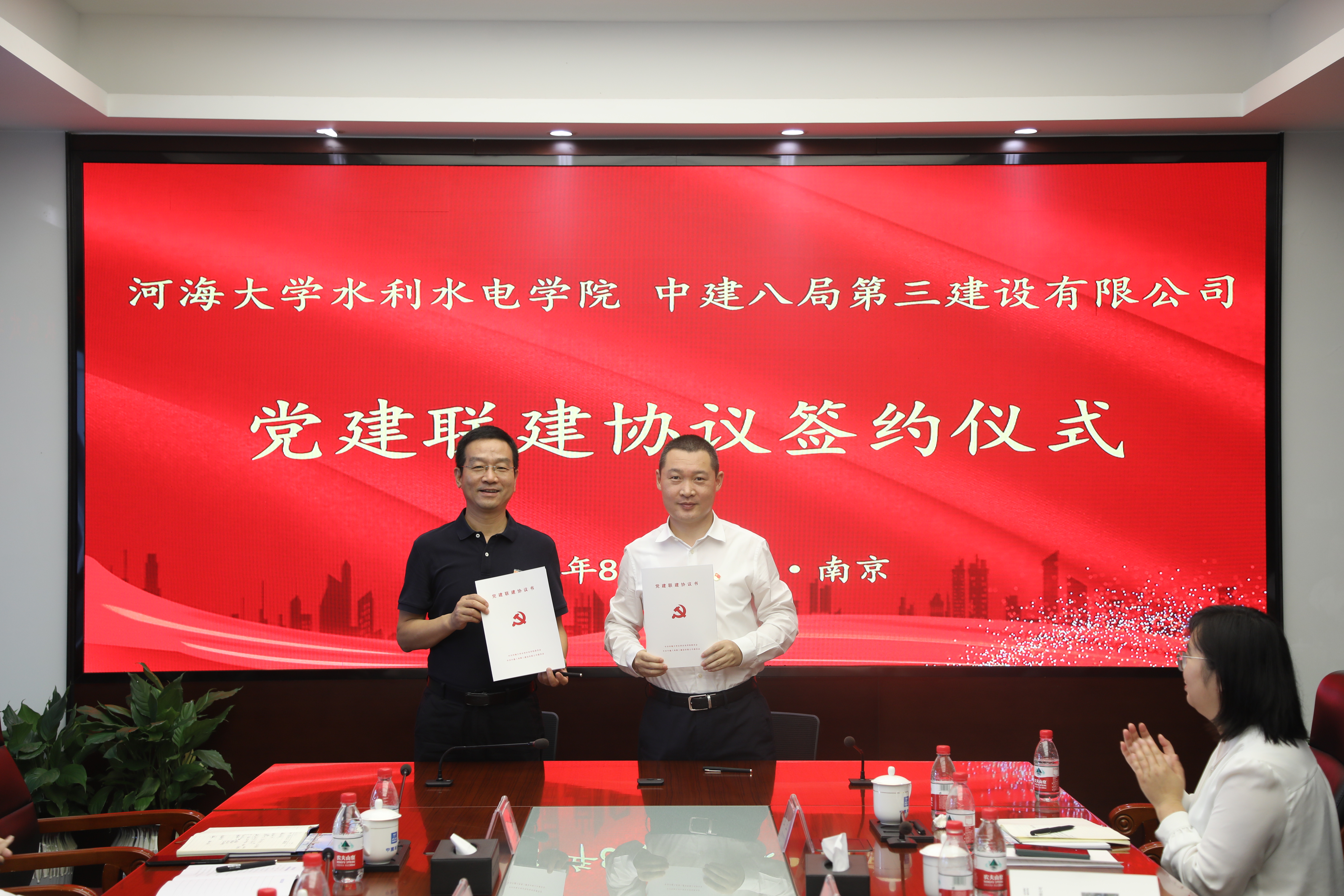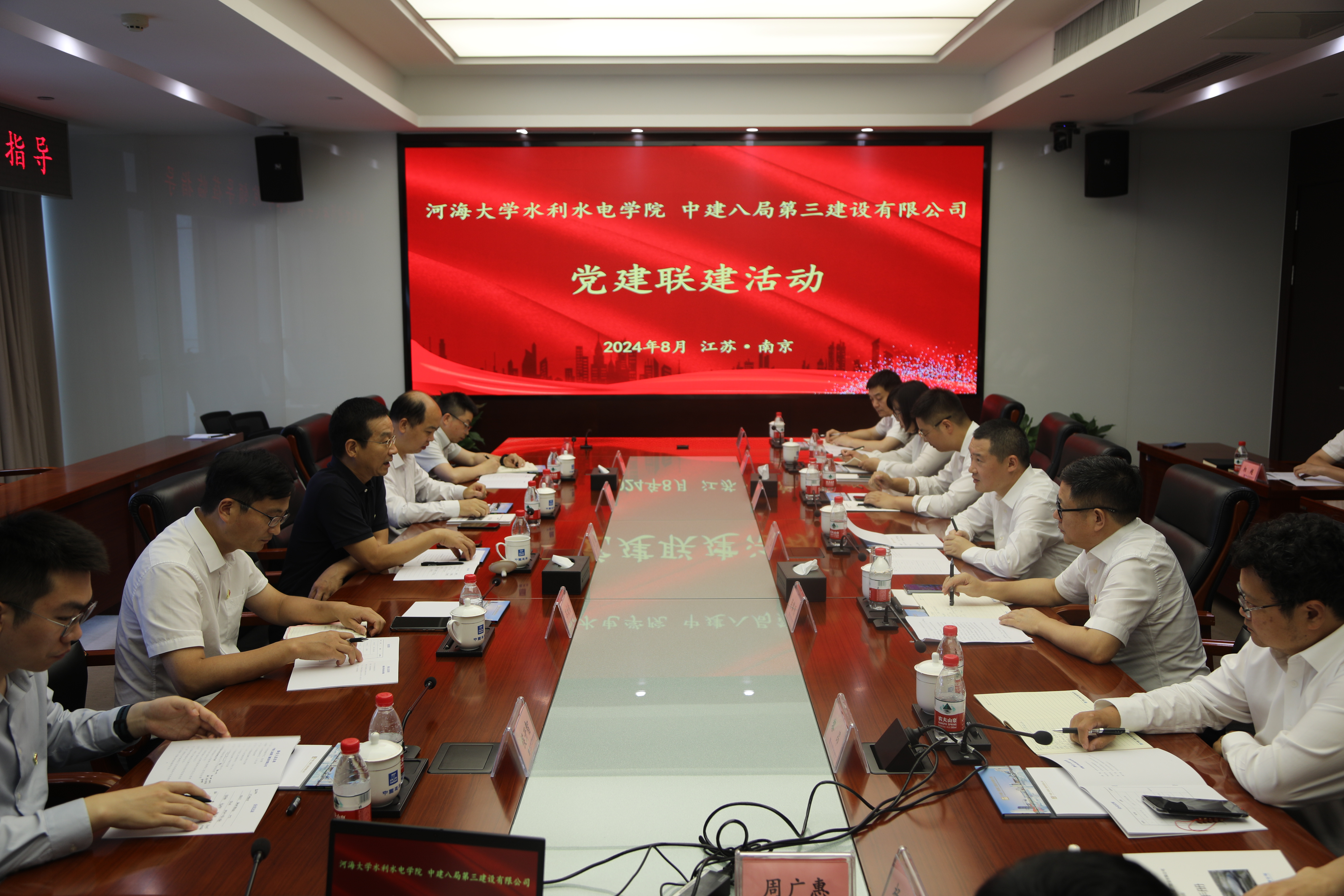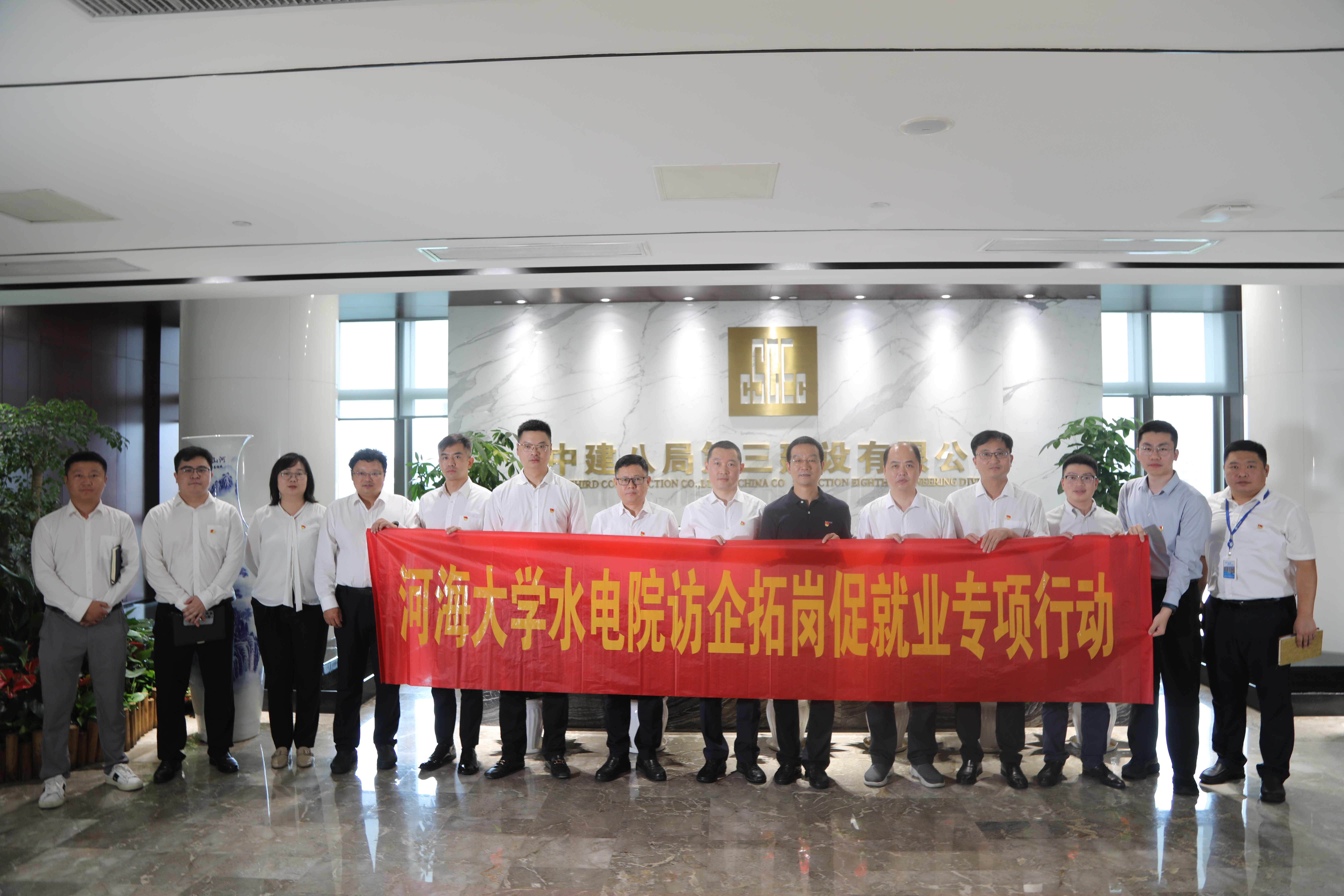 8月20日,学院党委书记娄健带队赴中建八局第三建设有限公司(下文简称“三公司”)开展专题调研。学院副院长冉启华、水工结构研究所所长岑威钧、工程教育与社会合作办公室副主任陈胜、辅导员侯开智共同参加活动。三公司党委副书记兼总经理李磊、工会主席蒋黎明、副总经理杨诚、基础设施事业部总经理黎昂、人力资源部经理庄玉、党委工作部部门副经理杨涛、基础设施事业部副总经理张宏杰及相关部门负责人出席活动。