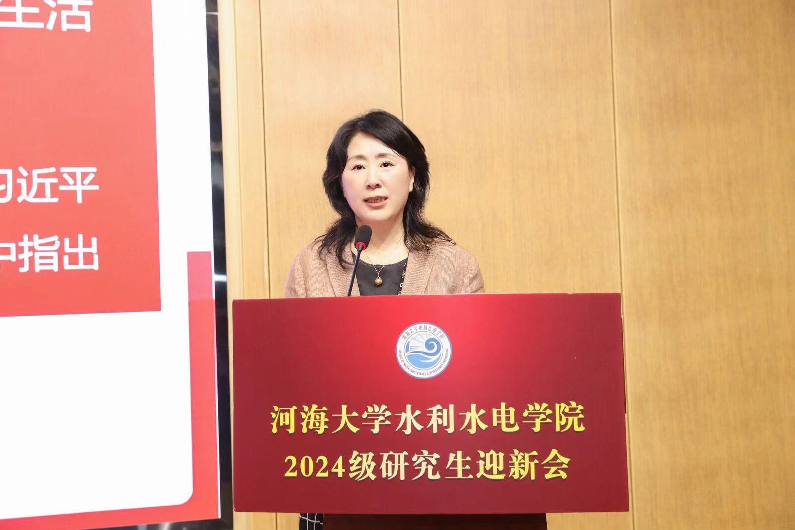 王媛院长代表全体师生员工向2024级新同学的到来表示热烈欢迎和衷心祝贺。她从学院历史、学科建设、学院师资等方面介绍了成人抖音 丰硕的办学成果和雄厚的科研实力。她提到,研究生阶段是人生的新征程,是奠定学术基础的关键时期,同时也是产生创新成果的重要时期,她指出,同学们一是要学以勤奋,当以孜孜不倦为道。二是要学以报国,当以治水兴邦为任。三是要学以创新,当以自强卓越为先,把祖国水利事业建设作为青春奋斗的鲜明标识,继续书写不负党和人民殷切期望的精彩篇章。
