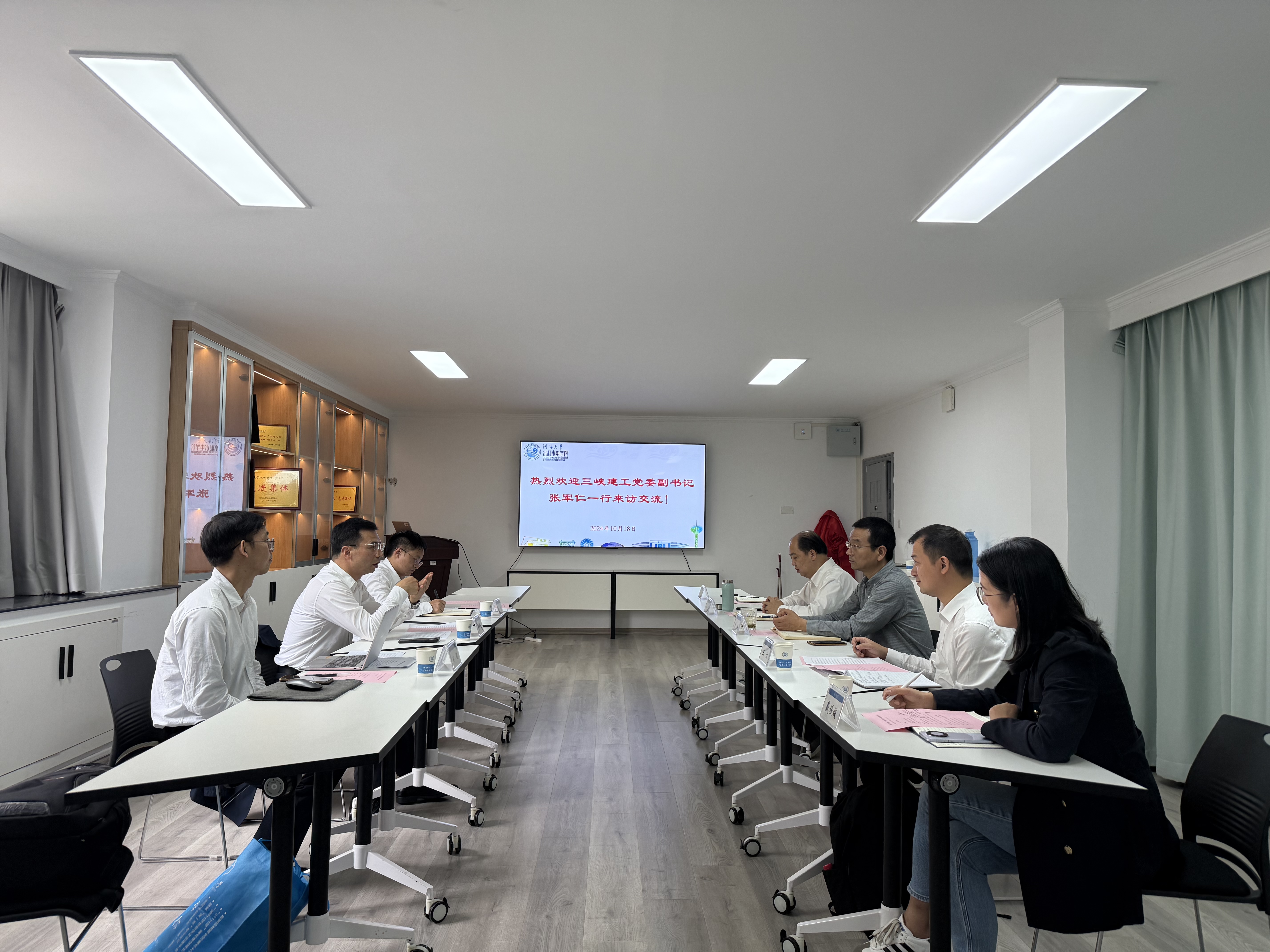 10月18日,中国三峡建工(集团)有限公司党委副书记张军仁带队建设管理部(专家咨询办公室)副主任郑斌,华中分公司党群工作部(纪检工作部)主任郑超来成人抖音 调研交流。学生处处长王方,学院党委书记娄健,副院长冉启华,院党委副书记戴媛媛,辅导员陈辰参加调研座谈。
