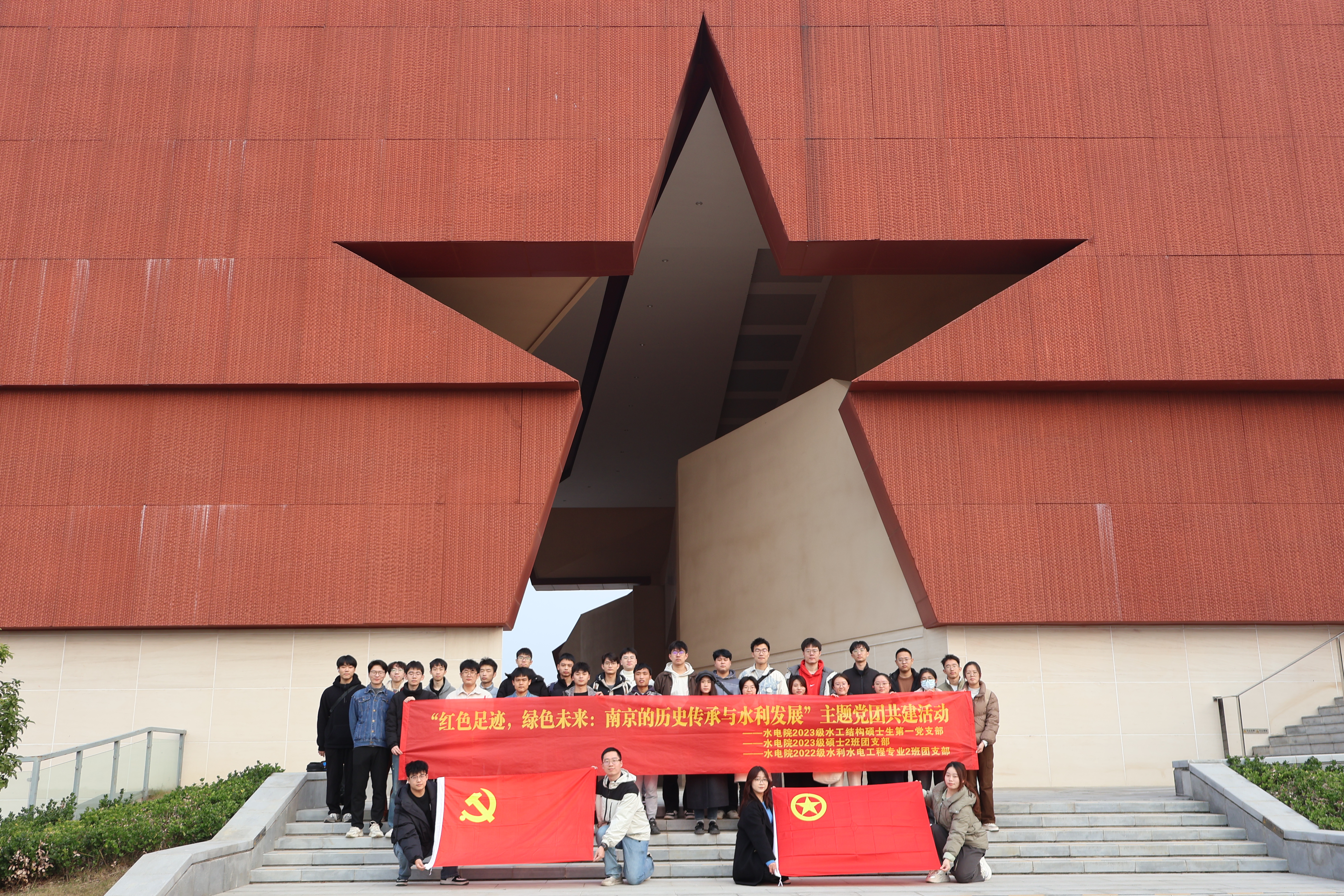 为牢记革命历史、弘扬斗争精神,学习南京在水利建设和生态保护方面取得的成就,12月6日,水电院2023级水工结构硕士生第一党支部、2023级硕士2班团支部和2022级水利水电工程专业2班团支部前往南京渡江胜利纪念馆和南京水利展示馆联合开展“红色足迹,绿色未来:南京的历史传承与水利发展”主题党团共建活动。