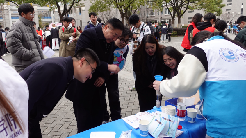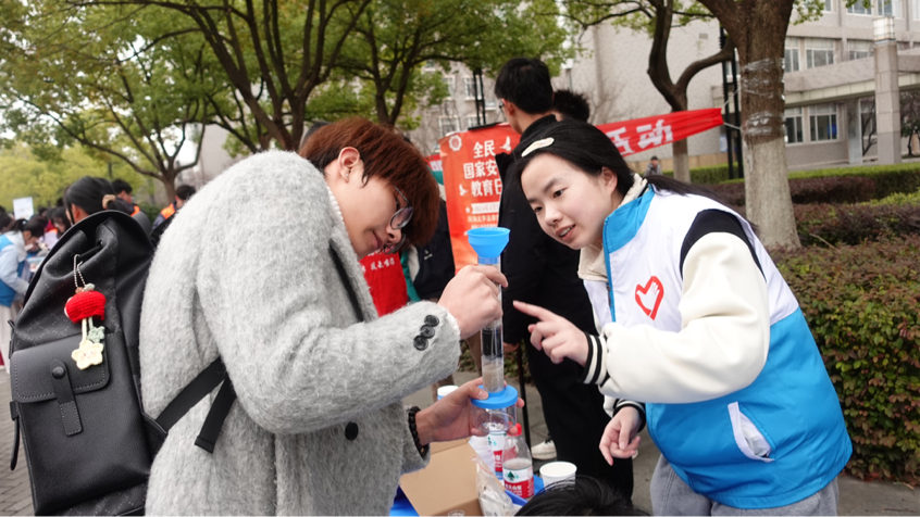 3月5日,成人抖音 在江宁校区小浪底广场开展“春‘锋’送暖,水漾解忧”——学雷锋志愿服务活动,通过节水理念宣传、互动问答、匿名书信、制作简易净水器等方式,吸引了在校师生的热情参与和广泛关注。
