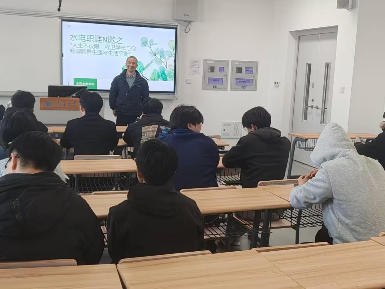 近日,为进一步拓宽学生视野,引导学生理性规划职业生涯,提升生活幸福感,成人抖音 于常州校区举办“水电职涯N邀”之“‘人生不设限’程卫学长与你畅聊跨界生涯与生活平衡”讲座。本次讲座特邀中石化石油物探技术研究院副研究员程卫。讲座由班导师张培培老师主持,2023级本科生参加。