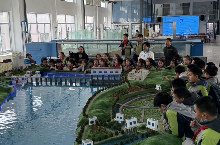 水文学及水资源综合仿真中心内,翻斗式雨量筒、人工降雨模拟系统等设备成为焦点。小朋友们动手操作沙盘模型,观察水循环过程,学习水旱灾害预警技术,在趣味互动中深化了对水资源保护与生态治理的认知。