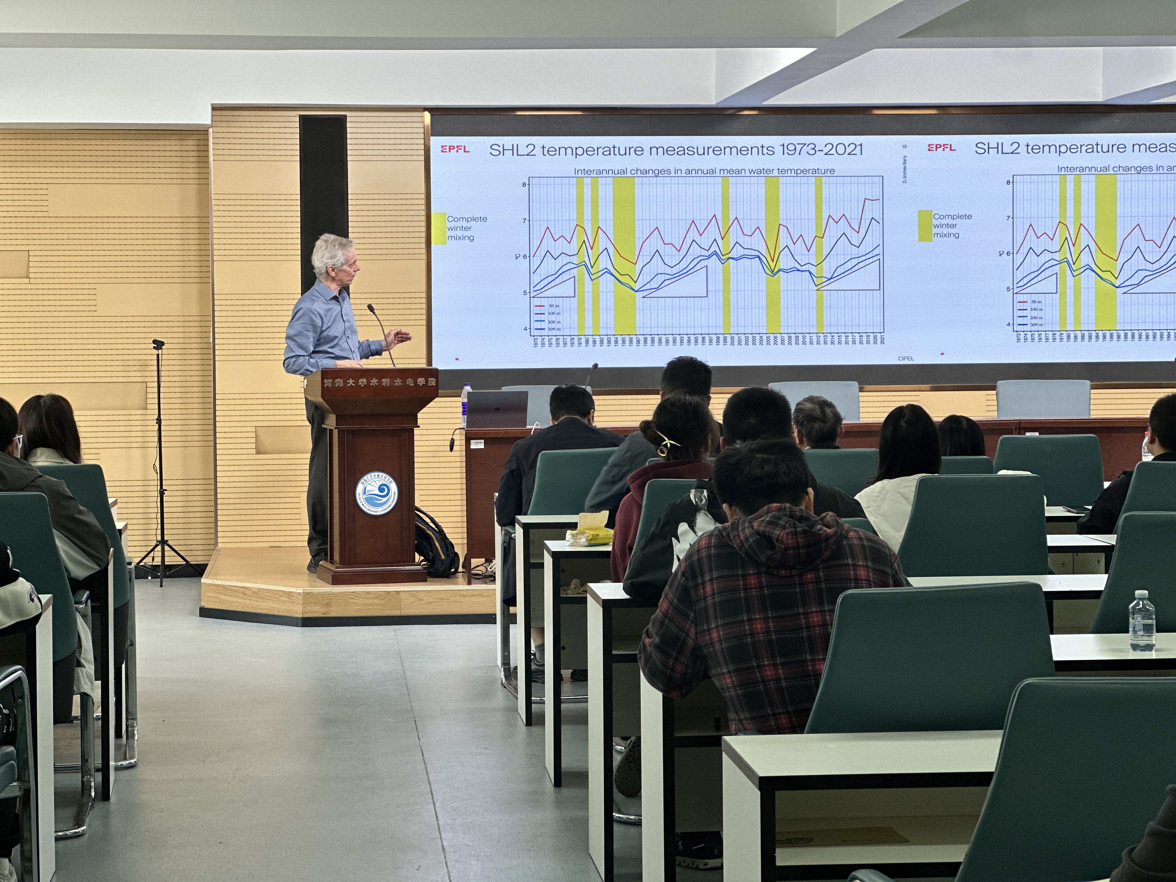 3月24日,成人抖音 邀请瑞士洛桑联邦理工学院(EPFL)建筑、土木与环境工程学院教授David Andrew Barry作学术交流报告,报告题目为“大型湖泊中的水动力学和水质动态:以气候变暖下的日内瓦湖为例”。会议由辛沛教授主持。