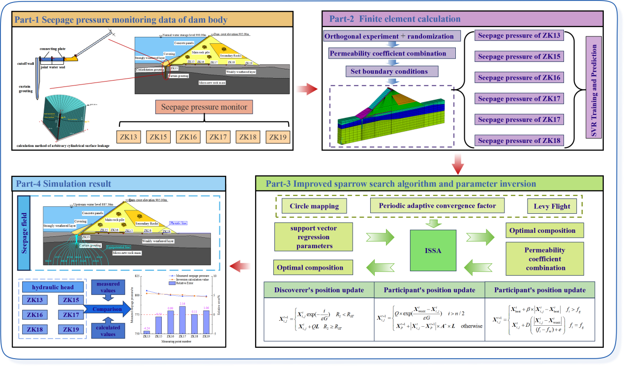 Feng Yaxin, Tian Bin, Shen Zhenzhong, Sun Yiqing, Zhang Hongwei, Xu Liqun, Gan Lei, Wang Runying. (2025). A novel inversion approach for seepage parameter of concrete face rockfill dams based on an enhanced sparrow search algorithm[J]. Computers and Geotechnics, 183: 107214.