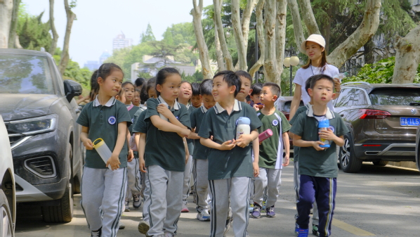 沿着志愿者的步伐,小朋友们参观了位于河海路的河海馆。河海路作为一代代河海人求索求学之路,承载着厚重的历史记忆,见证着无数学子以梦想为帆、以奋斗为桨的青春航程。河海馆作为学校重要行政楼宇,亦映照着河海精神的代代传承。