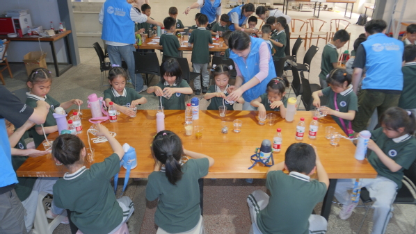 为了帮助小朋友们进一步探秘水的力量,在志愿者的指导下,小朋友们动手进行了“不掉落的硬币”、“棉线运水”等趣味小实验,通过亲手实践,感悟水的表面张力和引力作用,观察水的独特性质,思考水利工程中这些物理特性的应用。
