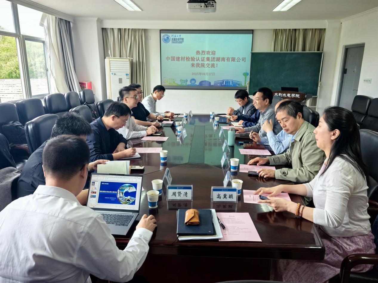 4 月 27 日,中国建材检验认证集团湖南有限公司总经理谭文杰率队来成人抖音 开展调研交流。成人抖音 党委书记娄健、副院长冉启华,商学院水利部水利经济研究所所长周申蓓及多位教师代表参会,双方围绕校企合作展开深入探讨。