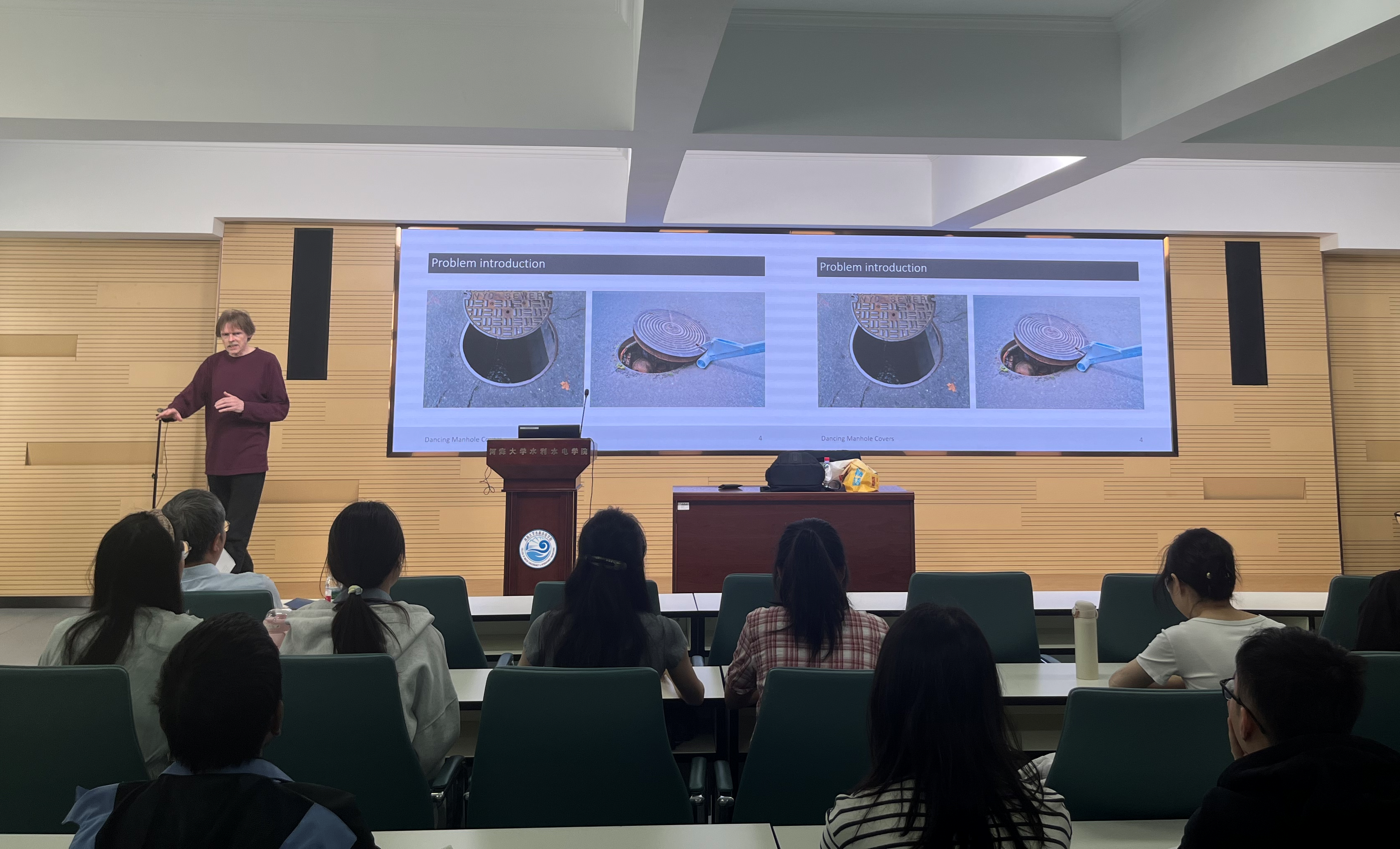 讲座中,Arris S Tijsseling 教授深入浅出地阐述了井盖跳动这一看似平常却又充满奥秘的现象。他指出,井盖可能会离开静止状态,开始“跳舞”,呈现出悬浮、上下移动、倾斜、旋转、弹跳、发出噪音、翻转甚至飞向空中等复杂且看似混乱的运动形态,这可能与非线性动力学对系统的影响密切相关。