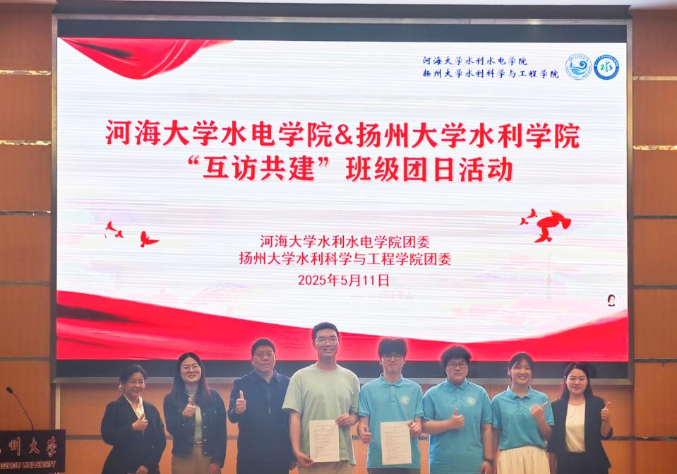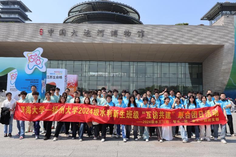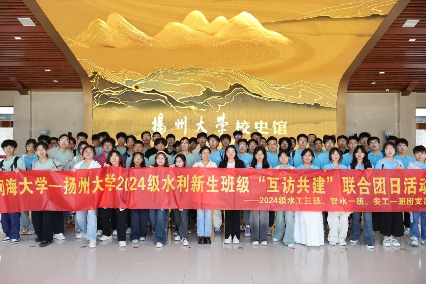 2025年5月11日,成人抖音 2024级本科生赴扬州大学水利科学与工程学院,开展水利新生联学主题活动。扬州大学水利科学与工程学院党委副书记张俊桂、团委书记吴媚、2024级辅导员杨蝉溪、成人抖音 团委书记兼2024级辅导员笪步源出席活动,成人抖音 2024级水利水电工程3班、智慧水利1班、安全工程1班、年级学生骨干代表、扬州大学水利科学与工程学院2403班全体学生参加,双方围绕党团共建、社会实践、校园文化等开展共建交流。