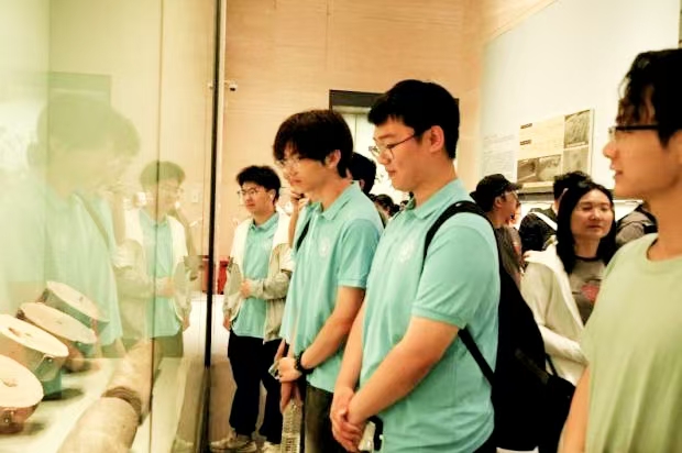 比赛结束后,同学们怀着好奇与期待的心情,在讲解员的引领下踏入扬州大学校史馆。在八个主题鲜明的展厅中,泛黄的老照片无声诉说着学校自创办以来的风雨征程,陈列的毕业证书、手稿、科研成果等珍贵展品,生动展现出学校在不同历史时期的发展脉络。大家时而驻足凝视,细细品读展牌上的文字;时而轻声交流,分享着自己的感悟。