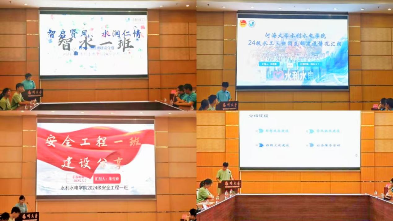 会上,扬州大学水利科学与工程学院水工三班、成人抖音 2024级水工三班、智水一班、安工一班依次上台汇报交流,介绍班级基本情况、思想政治建设、学风班风建设、取得的成绩荣誉等多个方面,展示出班级和团支部自新学期以来开展的班团活动情况及取得的成效。双方同学发表共建感想,对汇报内容进行交流分享,对未来双方可能的合作领域进行展望。