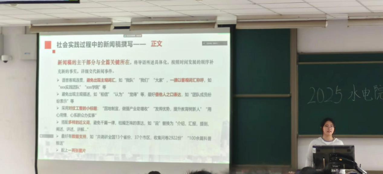 院团委办公室赵馨围绕暑期实践宣传工作,对通讯稿与新闻稿撰写进行专项指导。她系统讲解两类文稿的格式规范,从标题层级、字体字号、段落排版到配图标准,逐一明确细节要求,强调通讯稿需以简明扼要的语言,清晰呈现实践动态。作为实践成果的重要呈现形式,新闻稿需立足纪实性原则,精准提炼实践亮点,以逻辑清晰的叙事结构,突出实践活动的核心价值与社会意义,助力提升实践宣传工作的专业性与传播效果。