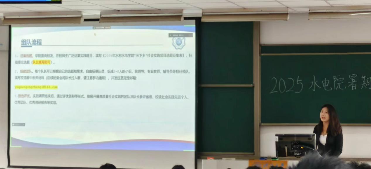 本次暑期社会实践动员大会立足学院全局规划,聚焦提升实践专业性、拓展参与广度、增强社会影响三大目标。通过系统解读与经验分享,帮助学生全面掌握实践要点,引导全体学子在躬身实践中厚植责任意识,激励同学们以专业所学投身水利事业发展,为行业高质量建设注入青春力量。(图/林睿乐、梁珊,文/姚方泽)
