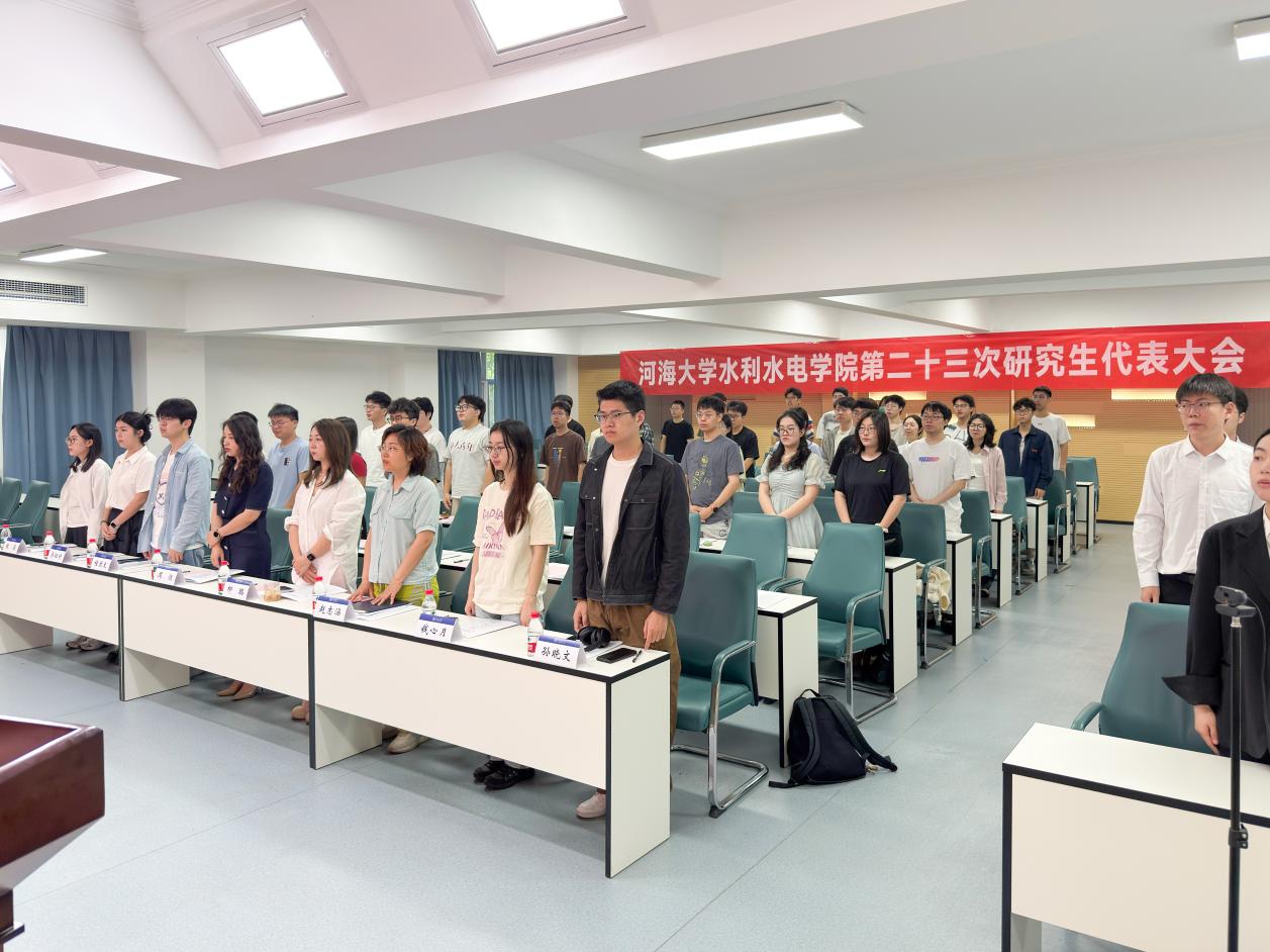 6月10日,成人抖音 成功召开第二十三次研究生代表大会。院党委书记娄健、党委副书记戴媛媛、校研究生会主席团成员钱家豪出席大会。学科学位秘书柳璐、研究生教学秘书周昶、研究生辅导员赵志涵,水文院、港航院、土木院、环境院、海洋院等兄弟学院研究生会负责人及成人抖音 研究生代表等60余人出席本次大会。