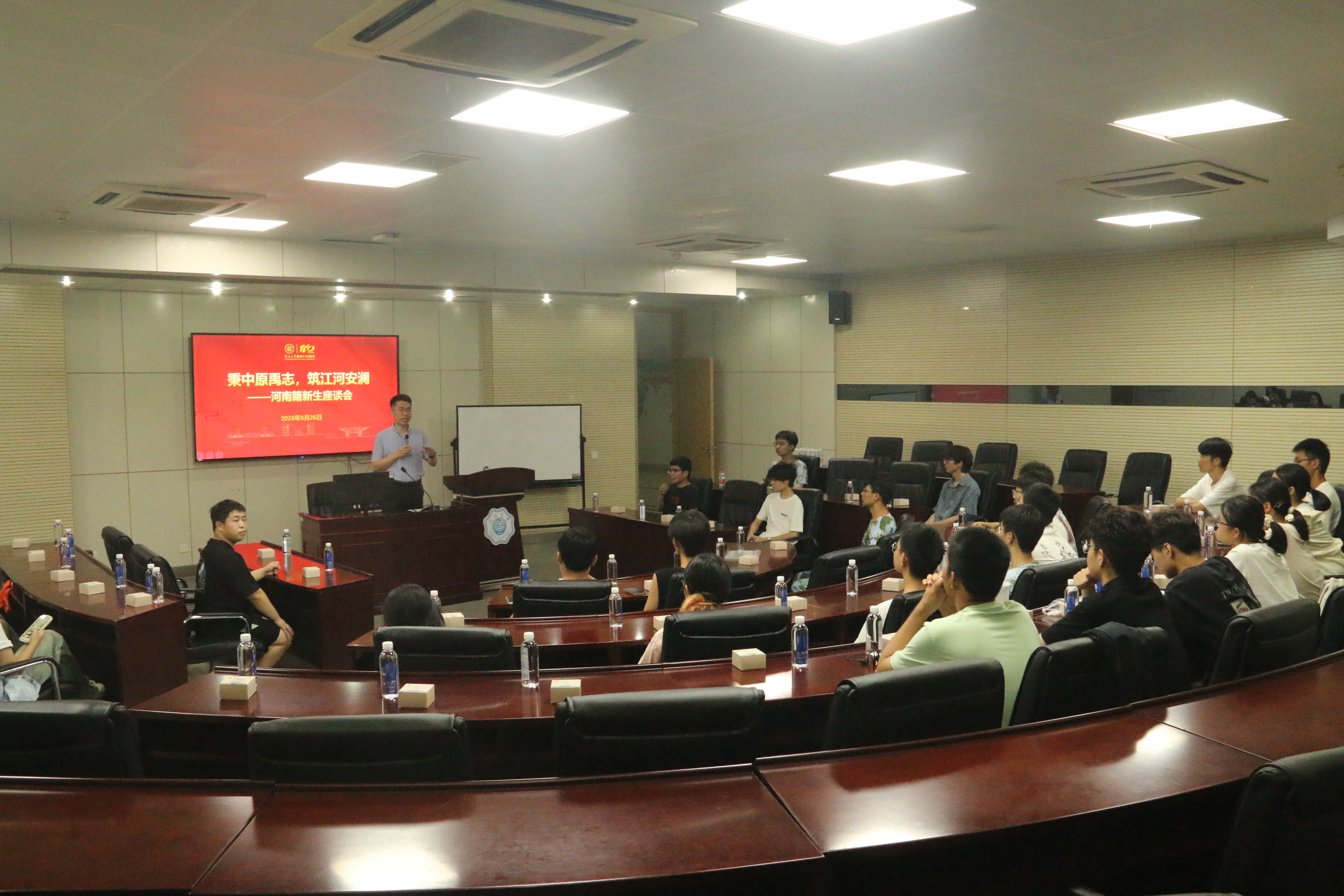 河南,作为国家重要的粮食生产基地,与水利事业有着天然深厚的联系。多年来,一批批优秀的河南学子怀揣治水兴邦的梦想踏入河海校园,成长为我国水利水电事业的骨干力量。在本次迎新活动中,学院教师代表侯开智老师与河南籍新生进行了亲切座谈,详细了解了同学们入校后的适应情况,并就专业学习、生涯规划等问题进行了深入交流。他表示,学院将不遗余力地为每一位学子提供最优质的教育资源和成长平台,希望河南的新同学们能尽快融入河海大家庭,传承“黄河精神”,将家乡对水的深厚情感转化为探索水科学的强大动力,未来为黄河流域生态保护和高质量发展等国家战略贡献智慧。