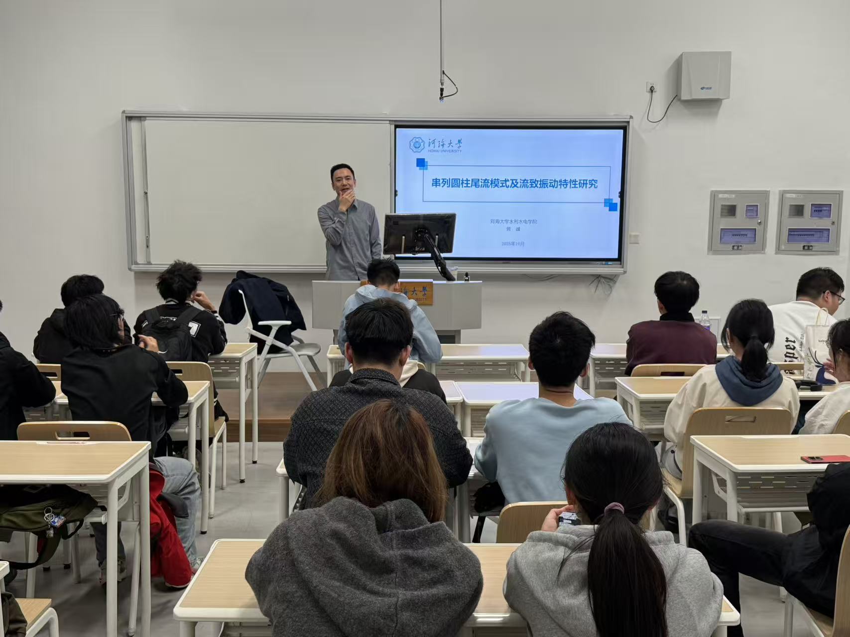 近日,成人抖音 “水趣课堂”系列讲座在常州校区2号楼C区C101顺利举办,本次讲座特邀成人抖音 曾诚副教授担任主讲,在中国科协大学生科技社团支持计划的支持下,为2024级本科生带来题为《串列圆柱尾流模式及流致振动特性研究》的精彩学术报告。