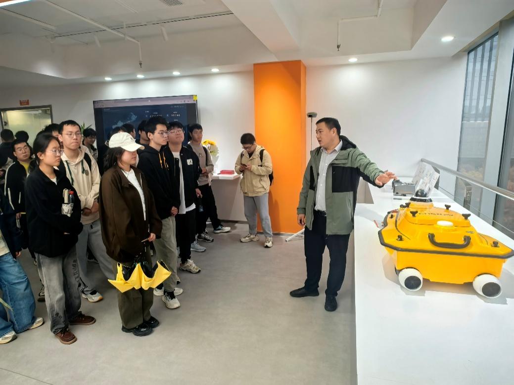 同学们在企业专业技术人员的带领下,近距离参观并了解了多波束测深系统、无人测量船、高精度GNSS接收机等一批先进的水利智能装备。技术人员深入浅出地讲解了这些设备的运作原理、技术优势以及在现代水利水文勘测、水资源管理中的具体应用。