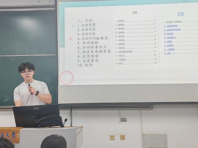 水电院学生会副主席柯坤以“策划案撰写标准和示例讲解”为题,从活动背景、目的意义、流程安排、预算明细、风险预案模块切入,逐条拆解易错点,现场问答解决潜在问题,手把手教学让参会人员策划案撰写能力得到提升,不再让策划案成为举办活动路上的绊脚石。