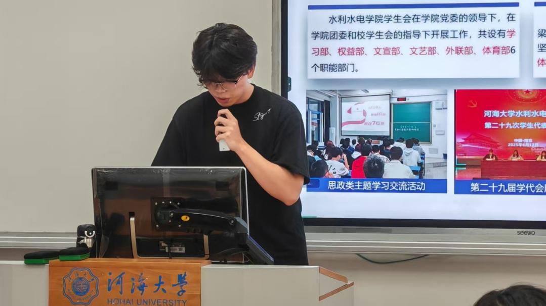 权益部李璇同学介绍了本学年部门举办的门牌秀、法律援助知识讲座等活动,充分展现出了权益部的担当与风采,他们润物细无声地为水电学子提供各种必要服务,并积极为其做好权益保障。