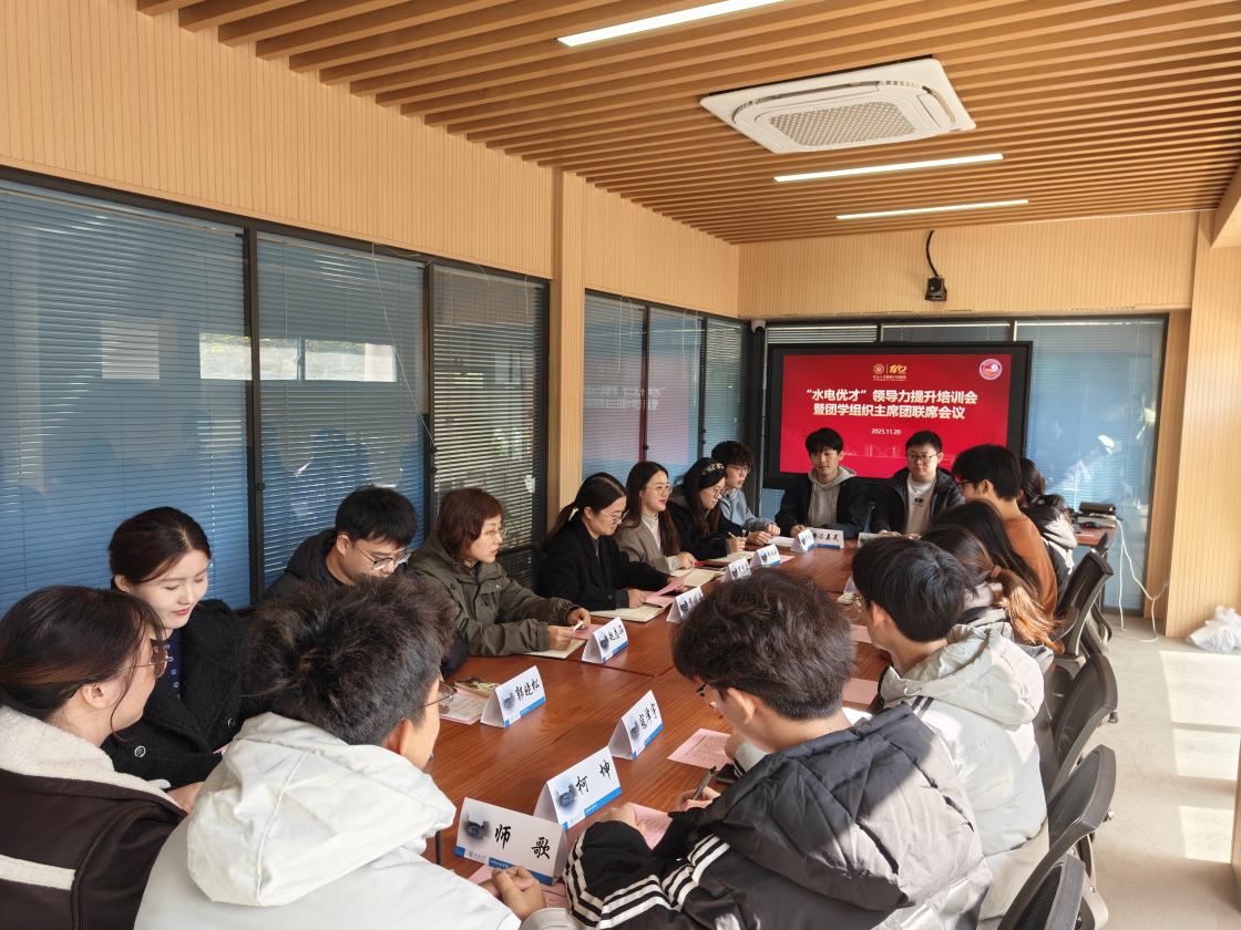 为进一步加强成人抖音 学生骨干队伍建设,提升各团学组织负责人的领导能力与综合素质,促进各组织间的协同联动与工作交流,11月19日,成人抖音 召开2025年“水电优才”领导力提升培训会暨团学组织主席团联席会议。学院党委副书记戴媛媛、院团委书记笪步源、2023级本科生辅导员帅雨婷、研究生辅导员赵志涵出席会议,院团委、学生会、研究生会、学生科协、青协、传媒中心主席团成员共同参加。