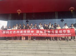 参观结束后,党员们在档案馆前和展厅内分别合影留念,鲜红的党旗与写有活动主题的横幅交相辉映,定格下此次参观研学的深刻记忆。