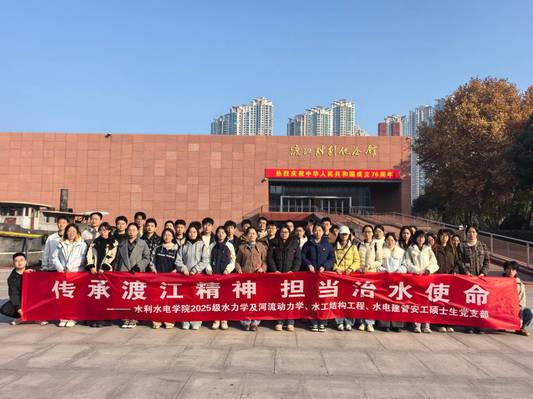 为深入推进党史学习教育,激励党员传承红色基因、践行专业使命,12月6日上午,成人抖音 2025级水力学及河流动力学、水工结构工程、水电建管安工三个硕士生党支部联合开展“传承渡江精神,担当治水使命”主题党日活动,组织全体党员前往渡江胜利纪念馆参观学习。