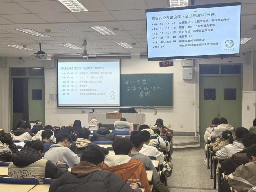 为帮助2025级同学们熟悉英语四级的考试流程,水电院学生会于12月10日晚举办“乐水学堂”英语四级模拟考试。此次模考为同学们模拟了真实考场环境与氛围,让同学们对于四级考试的流程有了更清晰地把握。