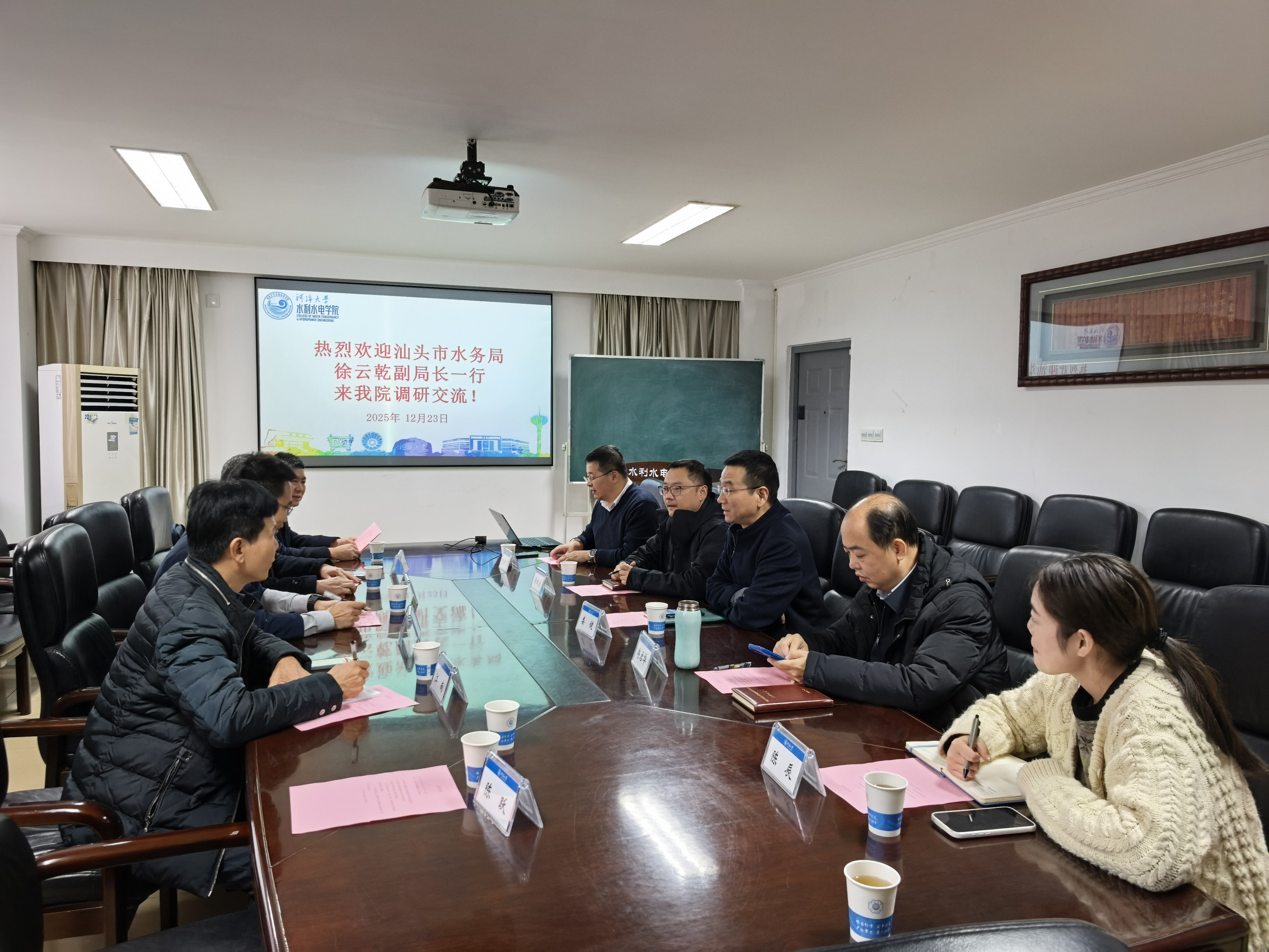 12月23日下午,汕头市水务局党组成员、副局长徐云乾一行到访成人抖音 ,就深化校地合作开展交流座谈。汕头市水务局二级调研员韩映民、三级调研员江南、市水利学会理事长张介炳、水旱灾害防御科副科长陈跃,成人抖音 党委书记娄健、副院长冉启华、俞晓东,教授包腾飞,辅导员陈辰等参加座谈。