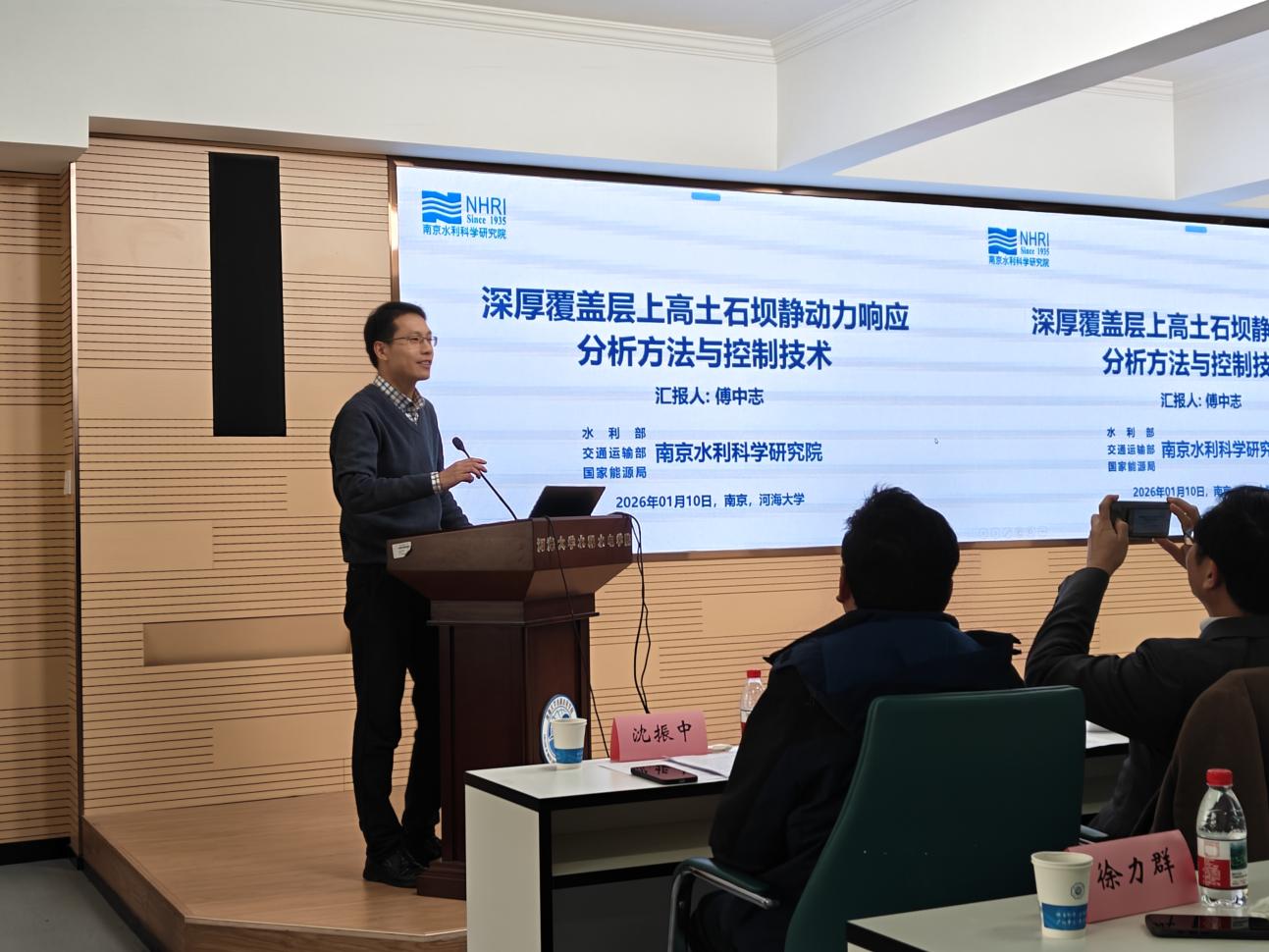 2026年1月10日,“水工结构安全与智能馈控技术研讨会”在成人抖音 举行。成人抖音 冉启华副院长出席并致辞。来自东南大学、大连理工大学、南昌大学、南京水利科学研究院、天津大学等单位的五位专家学者作专题报告,围绕水工结构安全与智能馈控关键技术开展深入交流与研讨,会议由沈振中教授主持。