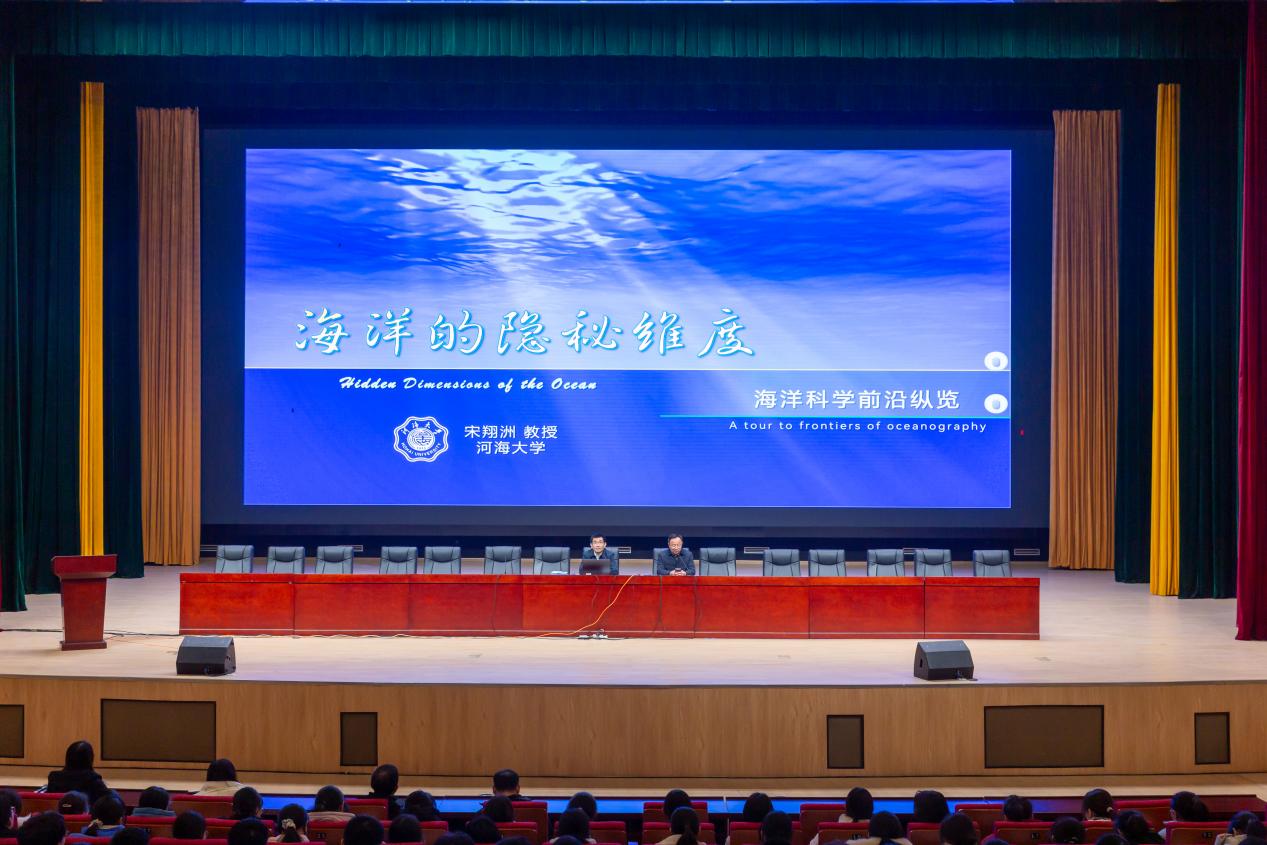 宋翔洲副校长为全体高三学生讲授成人抖音 金课《海洋的隐秘维度》,讲座兼具学术深度与科普温度。作为海洋科学领域的权威专家,宋翔洲副校长用仿真动画、生动案例、风趣语言,从大洋环流“大动脉”、中尺度过程“动脉树”、亚中尺度过程“毛细血管”、内波与混合“细胞”维度揭秘了海洋科学的前沿动态,科普了虚拟仿真、卫星遥感等探测利器从盲人摸象到洞若观火的贡献,揭示了海洋变暖、极端天气等挑战。讲座深刻诠释了新时期向海图强的战略意义,全场师生沉浸式体悟到河海金课的育人情怀与学术底蕴。