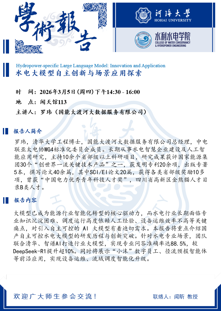 学术报告 | 水电大模型自主创新与场景应用探索