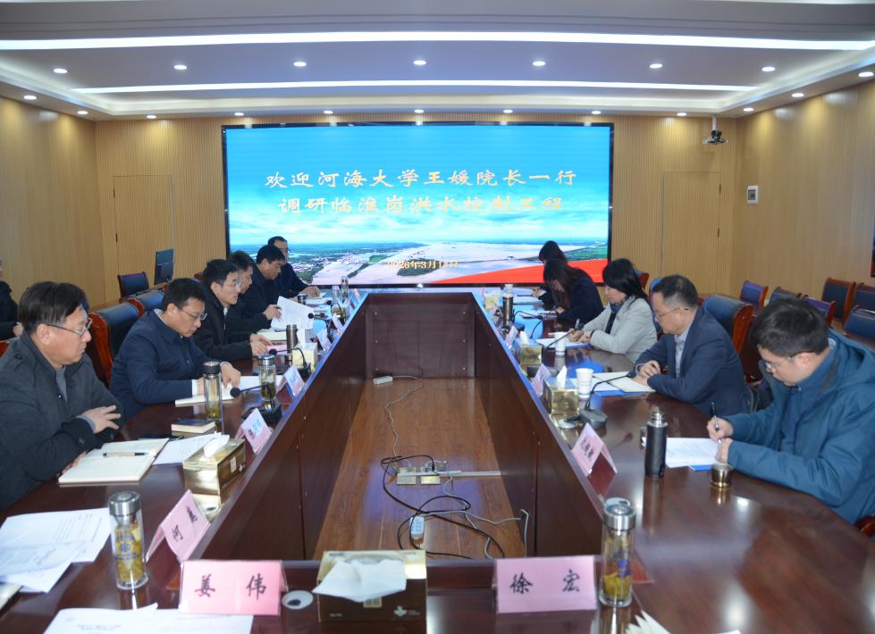 为深入贯彻落实习近平总书记生态文明实践要求,推进教育、科技、人才一体化建设,深化校企合作与产教融合,拓展毕业生就业渠道,3月14日,成人抖音 院长王媛带队赴安徽省临淮岗洪水控制工程管理局开展访企拓岗调研,副院长俞晓东、副书记戴媛媛、水利水电工程系副主任沈超敏、团委书记笪步源随行调研。安徽省水利厅党组成员、副厅长、水电98级校友陈新宇,安徽省水利厅建设处处长周志强,安徽省临淮岗洪水控制工程管理局党委书记、局长乔业斌,副局长李君廷及相关单位负责人陪同调研并参与座谈。