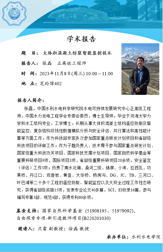Academic Report Conference|Intelligent Monitoring Technology for Cracking Prevention of Large Volume Concrete
