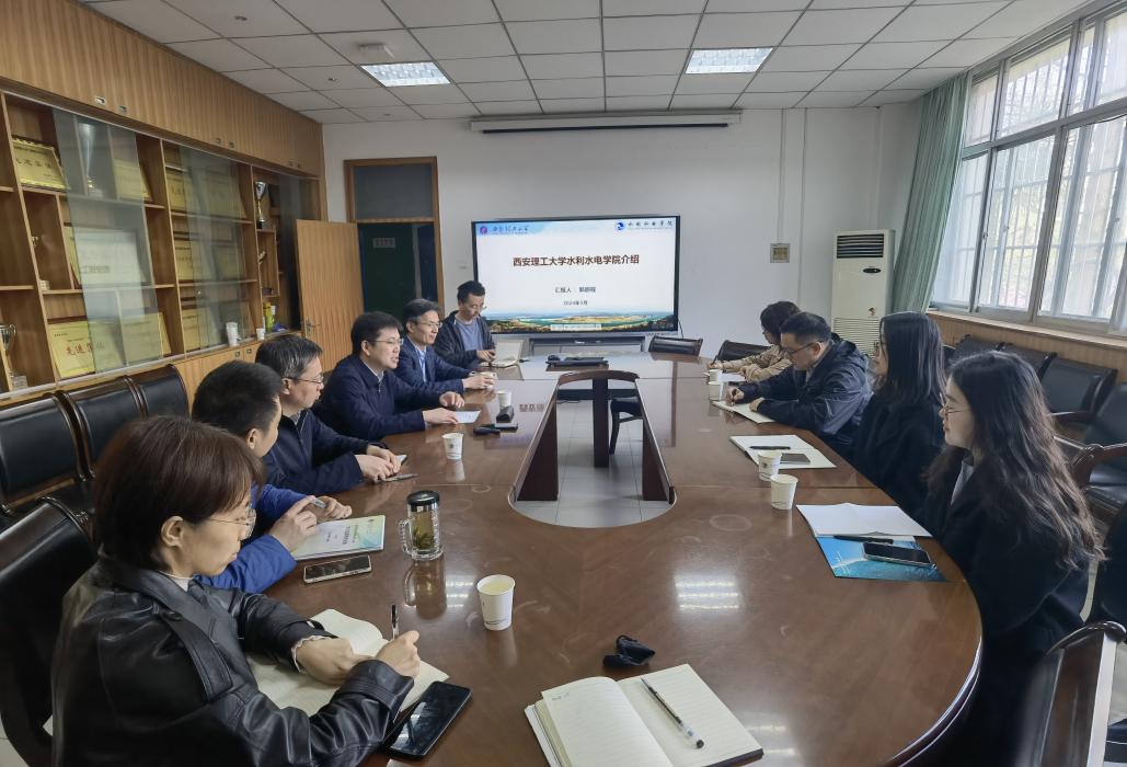 On March 28th, Yu Xiaodong, Vice Dean of our college, Dai Yuanyuan, Deputy Secretary of the Party Committee, Li Xiaoying, Deputy Director of the Department of Water Resources and Hydropower Engineering, and Da Buyuan, Secretary of the Youth League Committee, visited the School of Water Resources and Hydropower at Xi'an University of Technology for research and exchange. Guo Pengcheng, Dean of the School of Water Resources and Hydropower at Xi'an University of Technology, Li Hongying, Deputy Secretary of the Party Committee, Wang Yimin, Vice Dean, Wu Luochang, Vice Dean, Li Min, Director of the Department of Hydraulic Engineering, Li Min, Director of the Institute Office, Yang Fan, Director of the Student Affairs Office, and relevant teacher representatives attended the symposium and exchange meeting.